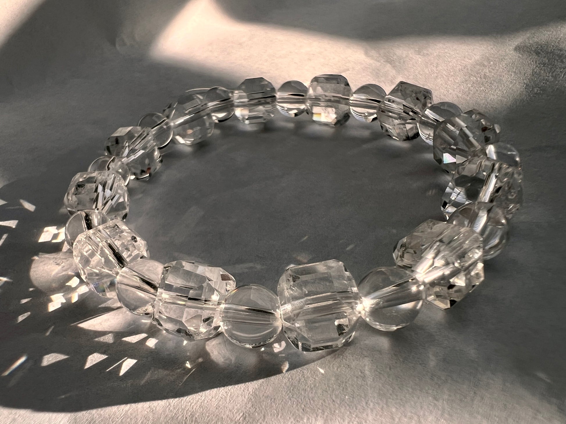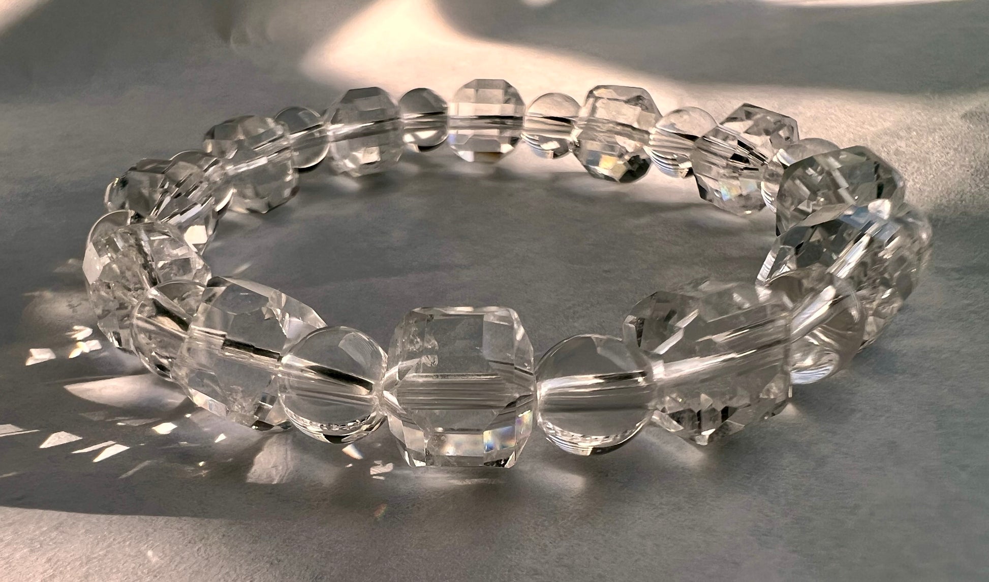 This Clear Quartz Faceted Bracelet boasts in a diverse style, showcasing its glorious power in form of high vibration Rainbows.