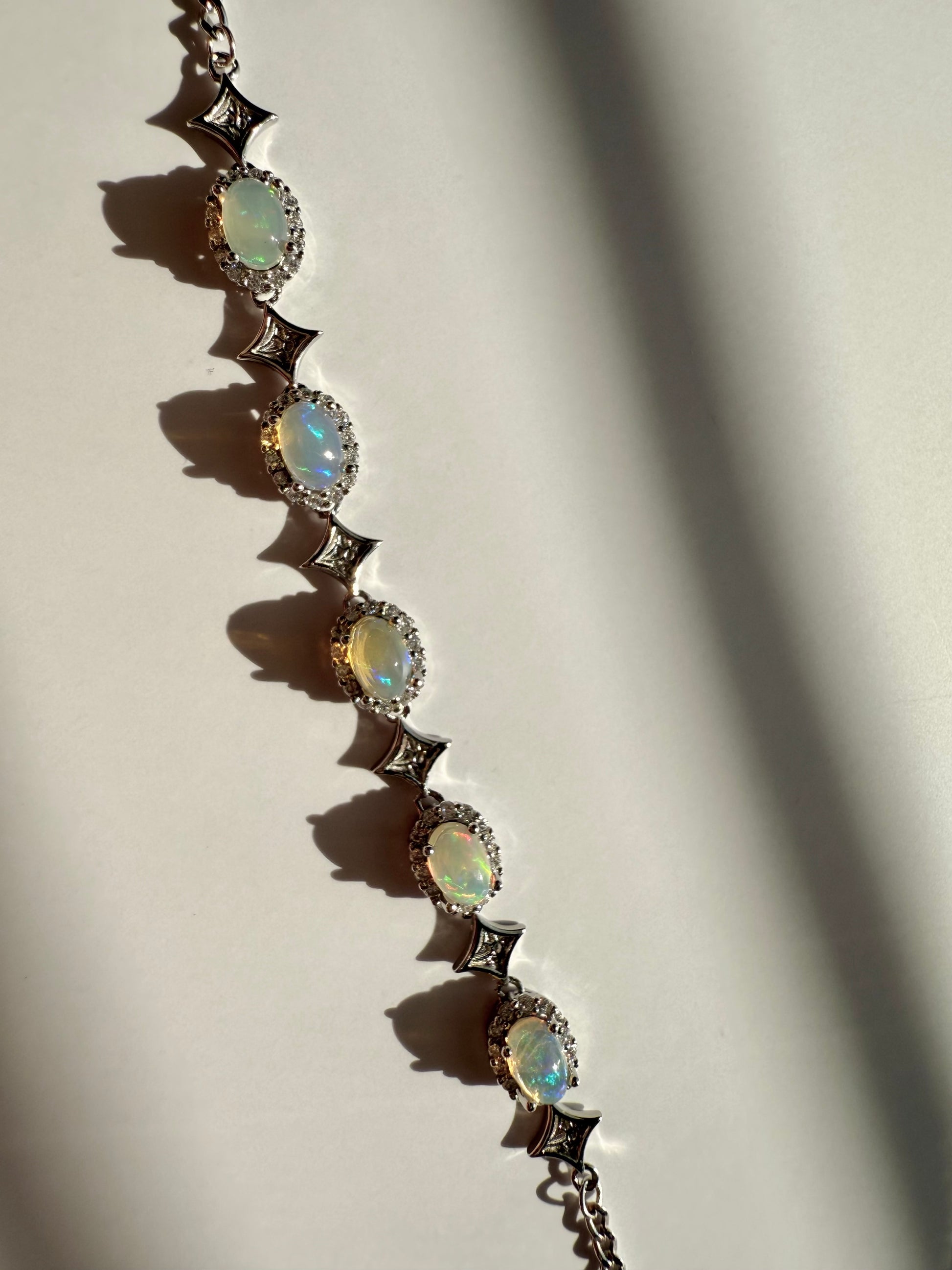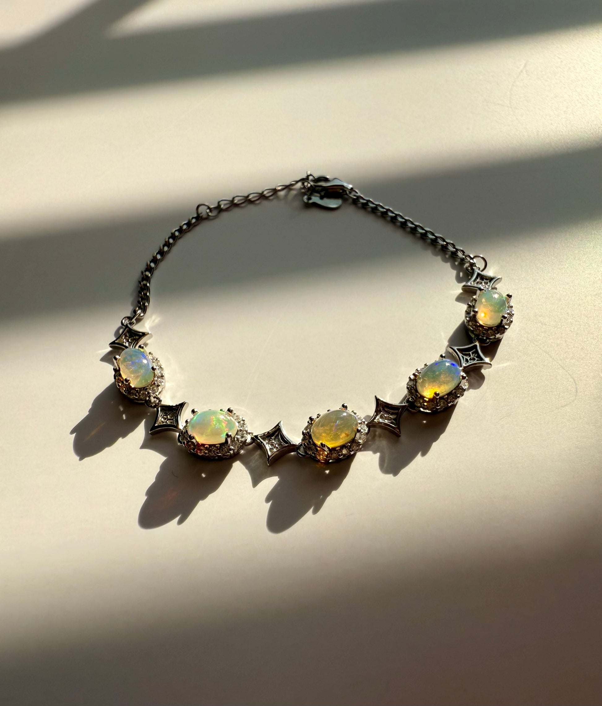 Unlock your inner potential and elevate your spiritual journey with the Opal star bracelet. Its crystal opals harness the power of clarity and insight, magnifying psychic abilities and strengthening intuition. Through the use of meditation and spiritual practices, this bracelet can help you achieve a deeper understanding of yourself and your purpose.