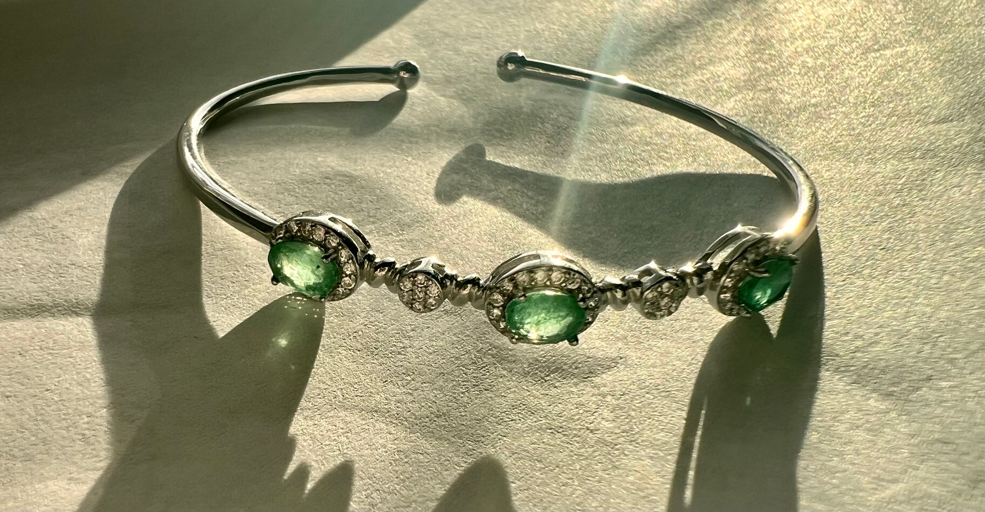 Relax, find balance, and unlock your own inner wisdom with this sterling silver Emerald cuff. The timeless elegance of this gemstone promotes natural healing and emotional stability, making for a truly harmonious and growth-oriented accessory. Experience the powerful synchronicity of the mind and heart with each wear.